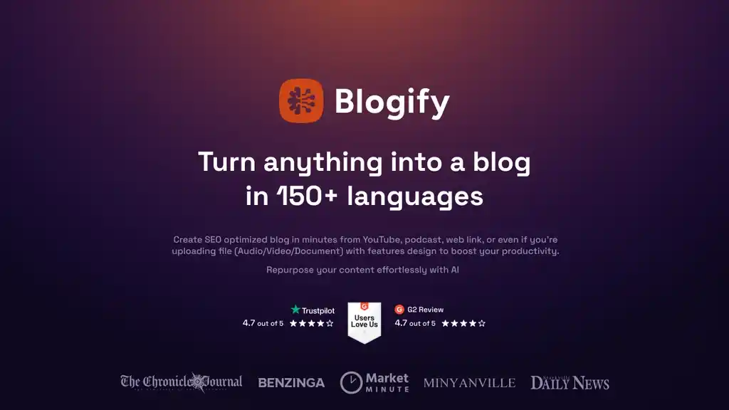 Blogify is more than just a blogging tool, it’s a full-scale content automation assistant. Imagine turning your podcast or YouTube episode into a formatted, SEO-ready blog post with headings, summaries, and tags. That’s the kind of time-saving support Blogify offers.