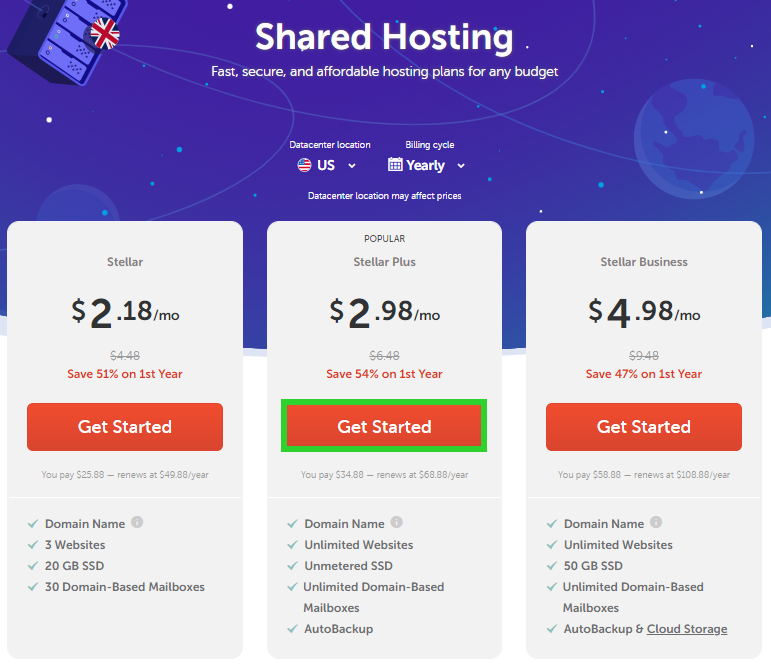 • Despite being very affordable, the host does not compromise on security features. All plans are equipped with complimentary positive SSL certificates, domain privacy protection, DDoS security, and automated backups. Providing this amount is sufficient to ensure safety against the most prevalent hazards.