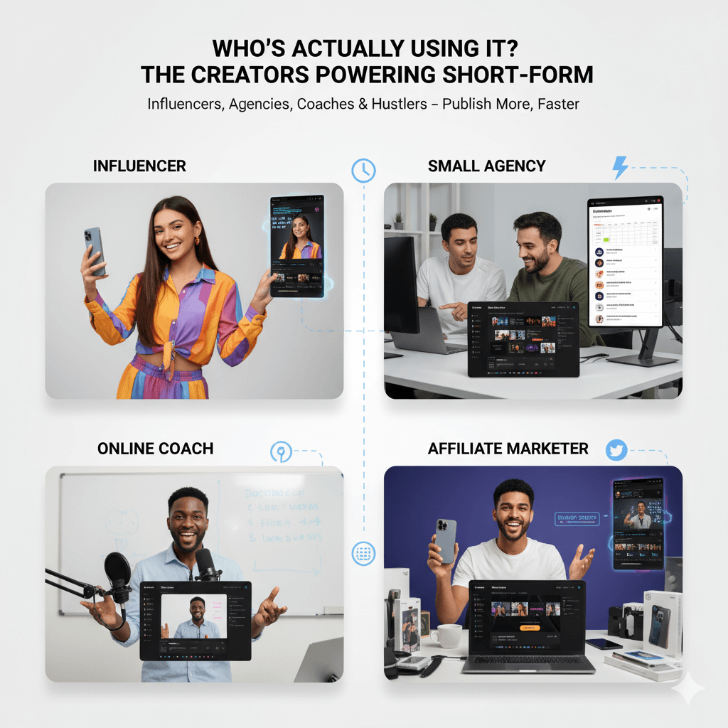 • Influencers who live on short-form platforms and need quick turnarounds.